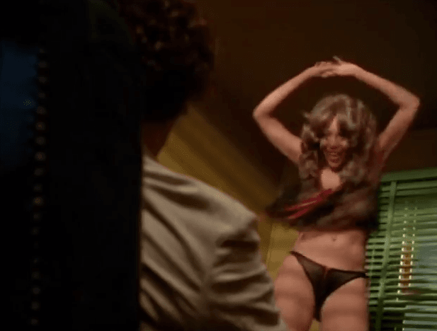 The ensuing film is a surprisingly straight, competent, brisk courtroom drama, oddly visually resembling Columbo in places (even in Russ’ very occasional bursts of his trademark visual flights of fancy, as Columbo was not averse to such indulgences from time to time). The story centres on a sensationalist rape trial, in which the young scion of a wealthy family is roped into blaming his actions on the influence of the once-banned book having inflamed him past the point of responsibility for his actions. A careerist D.A. with sights on higher political office, and a local ‘decency league’ collaborate in concocting the story, which an idealistic lawyer seeks to unpick in order to secure the release of a young bookstore employee arrested for distributing obscene material, and to defend the book’s publisher (holy shit, it’s Tom Selleck!)