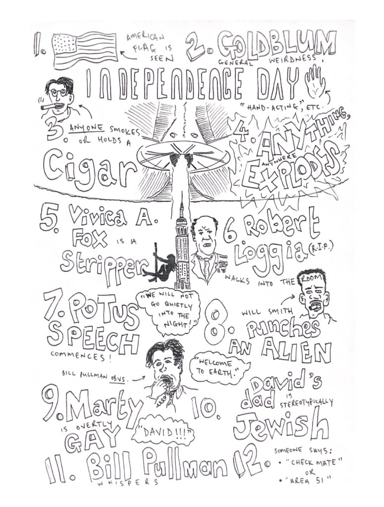 Many years ago, I shamelessly stole from drinkingcinema.com and cobbled together this ID4 drinking game in their honour. Knock a few back, David Levinson-style—responsibly, of course.