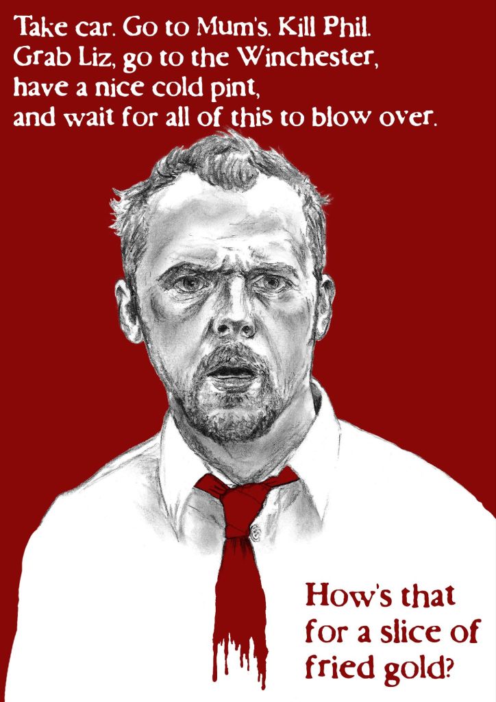 Developmentally-arrested 29-year-old electrical store employee Shaun’s slacker lifestyle, mostly spent whiling away his nights with crass childhood friend Ed in the local pub, sees his girlfriend Liz give him the boot at a most inopportune moment – the advent of a zombie apocalypse that seems only slightly more grim and shambling than your average workday in North London. Armed only with a box of 12” records, a child-sized cricket bat, and his flatmate’s ‘borrowed’ Renault Megane, Shaun tries to rise to the occasion to bring Ed, Liz, and his mum to an impenetrable fortress (which is also, coincidentally, his idea of a romantic nightspot) …his local pub.