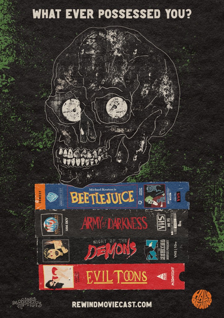 It’s The Rewind Movie Podcast’s inaugural, choose your own adventure, HalloRe’ewind evening of duelling quadruple bills! Two mini-marathons of 4-film blocks, as 6pm, 8pm, 10pm, and midnight screenings. Arduous curation criteria (more like unofficial guidelines) insisted we include something funny, something super entertaining, something disgusting, something legit unsettling, and at least one trashy new discovery.